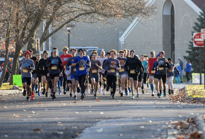 The walk/run begins at 9am on Thanksgiving morning. The St. Michael the Archangel Parish auditorium doors will open at 7:30am before the race.Â
