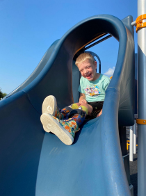 Grant Wichman smiles as he rides down the slide. Photo Credit: Kaley Wichman