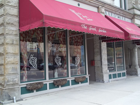 The Greek Garden is the friendly neighborhood place where everyone knows your name. The booths and tables have a sight line to the grill and kitchen, so you can see the gyro meat being sliced and smell the Greek seasonings. The lively banter between kitchen and wait staff adds to the comfortable atmosphere. Exposed duct work and interesting murals adorning the walls add to the casual appeal. The words stencilled above the grill says it all: “Eat Greek and Be Merry.”