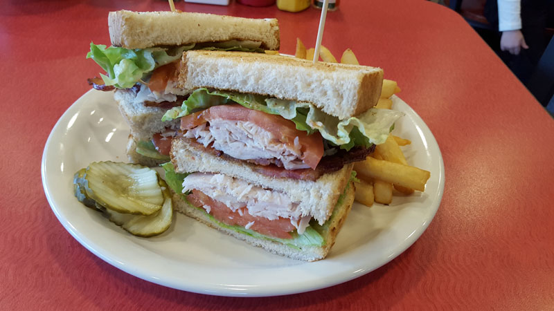 I waffled between lunch and breakfast (pun intended), because everything simply looked so good and there was so much variety. Did I want the Eggs Benedict? An omelet? Bananas Foster French Toast, or a Zesty Feta Burger? How do I choose?! Hoping to satisfy both my lunch and breakfast cravings, I ordered the Breakfast Club Sandwich.