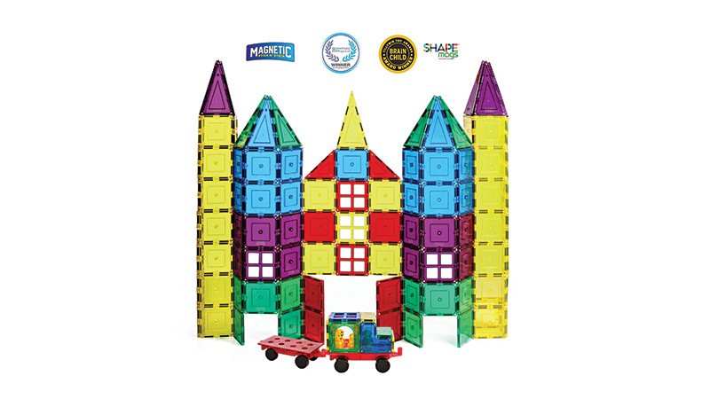 Building with magnetic tiles has never been so awesome. The Shape Mags Classic Set has 100 pieces of building fun. Kids will enjoy these 3-D magnetic plates that “Stick N’ Stack,” including seven different shapes with two magnetic wheel bases. Thousands of children across the world have been captivated by Shape Mags, which are for both boys and girls.