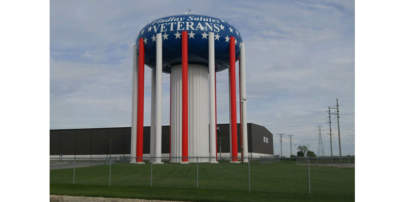Located on County Road 99 on the grounds of Ball Metal Corp., the north water tower has been adorned with red, white and blue in a salute to veterans- an idea suggested by Safety Service Director Paul Schmelzer. “Every 15-20 years, we have to do maintenance on the towers and repaint them,” said Findlay Mayor Lydia Mihalik. “Given the location and visibility of the tower along I-75, and Findlay being known as Flag City USA, we wanted to make sure that veterans across the country who fought under our flag knew how appreciated they truly are.”