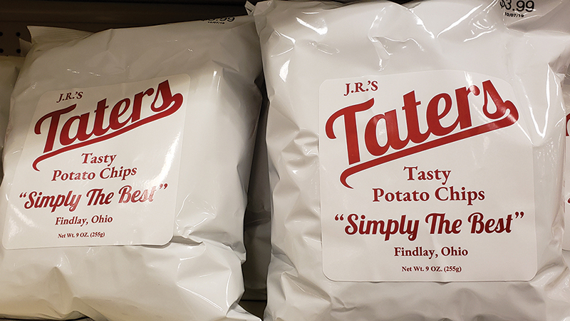 The simple message on packages of JR’s Taters states they are “simply the best.” Jim Roby, who launched the new potato chip brand, grew up in Findlay and sought to recreate the taste of Findlay’s famous “Taster Taters”–a potato chip store that operated in Findlay from 1931-1973. Although he was unable to locate the exact recipe, he believes that his potato chips closely match the original Tasty Taters.