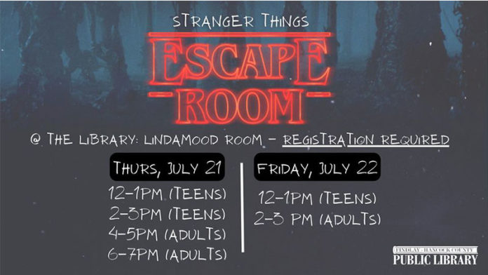The Findlay-Hancock County Public Library is hosting a new escape room that will be Stranger Things themed on July 21 and July 22.