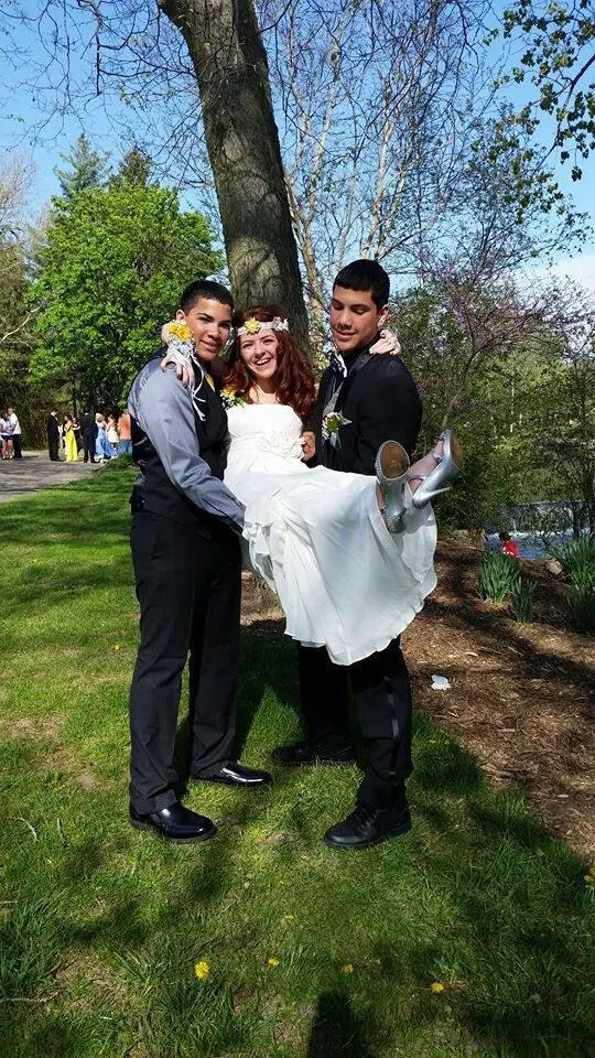 Step siblings Jenna Bloyer, 18, Quentin Manns, 17, and Peyton Manns, 15, at their senior/junior prom at Findlay High School.